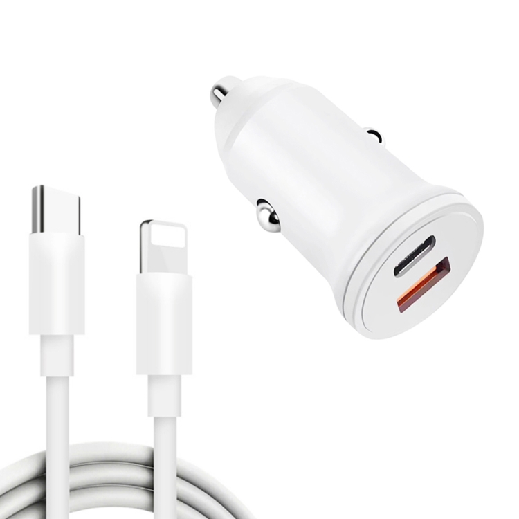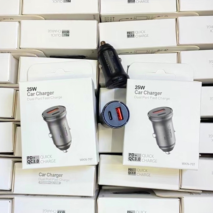 WKN-707 PD 20W USB-C / Type-C + QC 3.0 25W USB Mini Car Charger with USB-C / Type-C to 8 Pin Data Cable, Cable Length: 1m