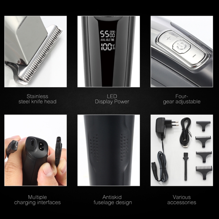 WMARK C24-HC011 USB Engraving Scissor LED Display Rechargeable Hair Clipper, EU Plug
