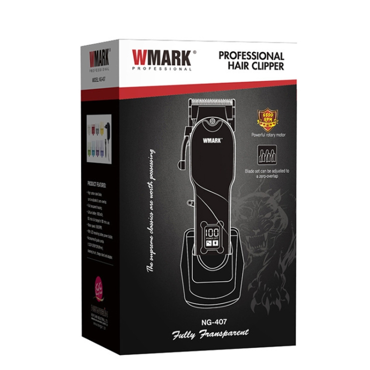 WMARK NG-407 Rechargeable Transparent Hair Clipper With Base LED Display, EU Plug