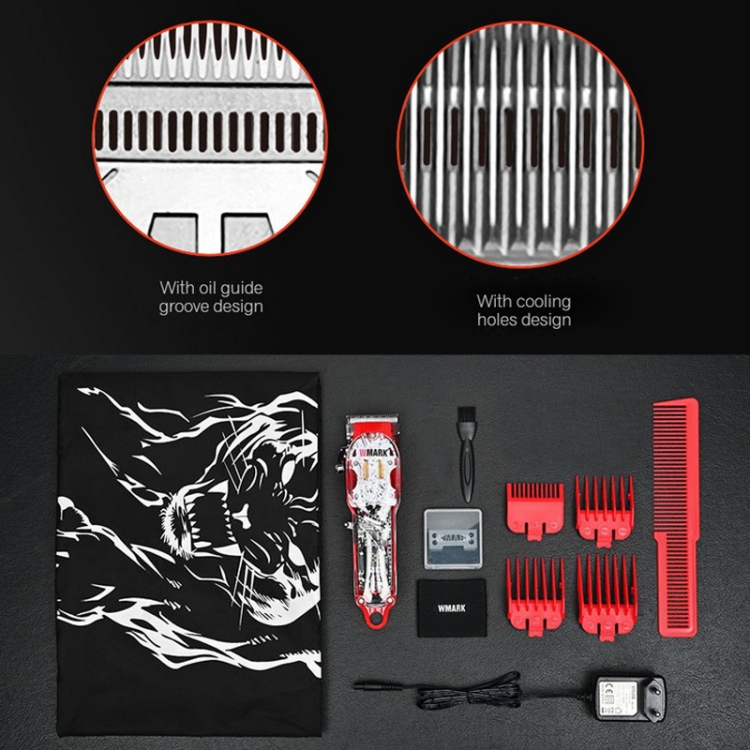 WMark NG-409 Transparent Hair Clipper Wireless LED Display Hair Clipper, EU Plug