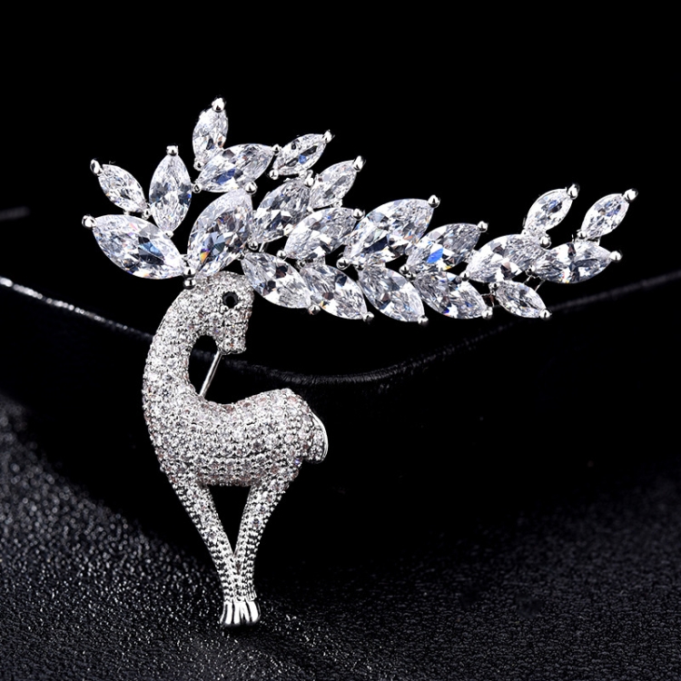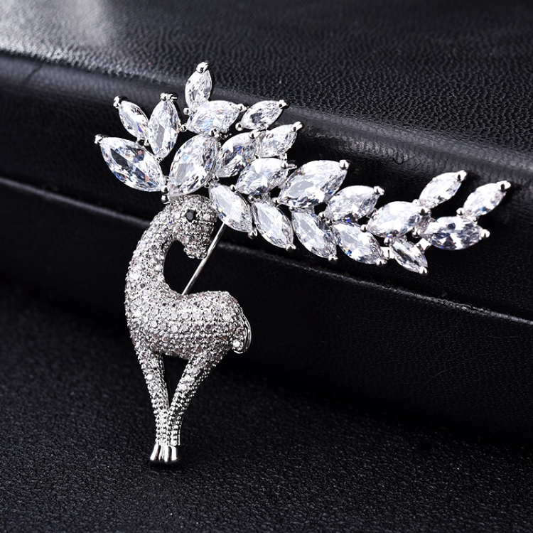 Women Fashion Crystal Zircon Cute Deer Brooch