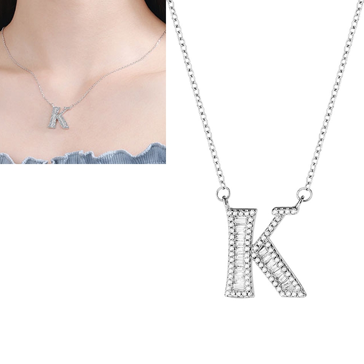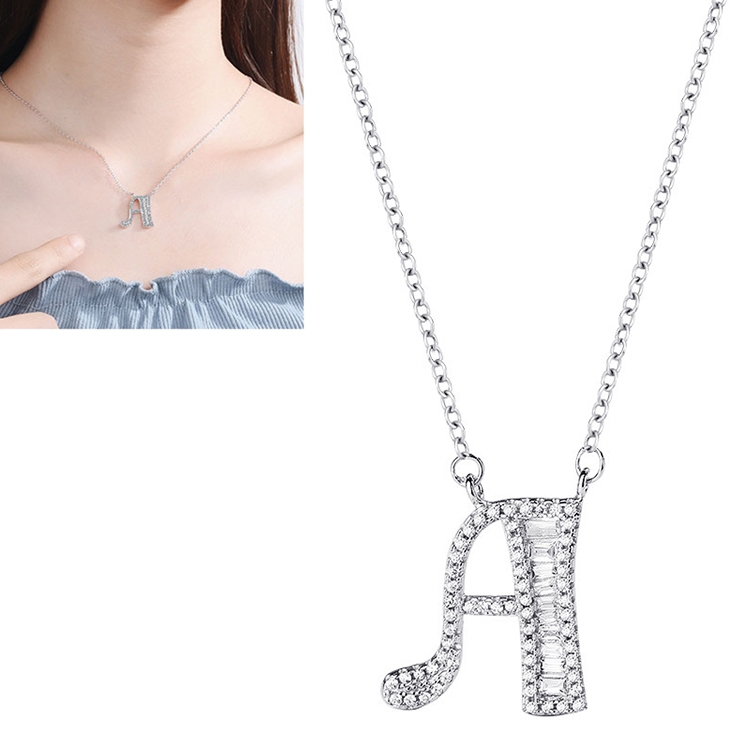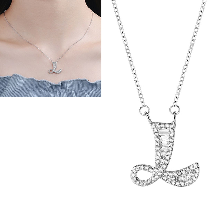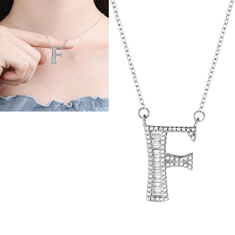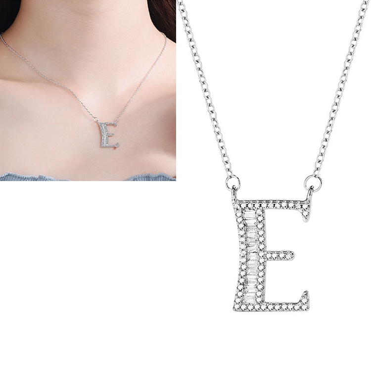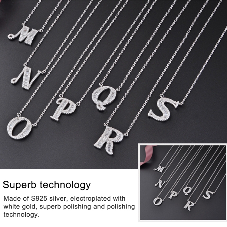 Women Fashion S925 Sterling Silver English Alphabet Pendant Necklace