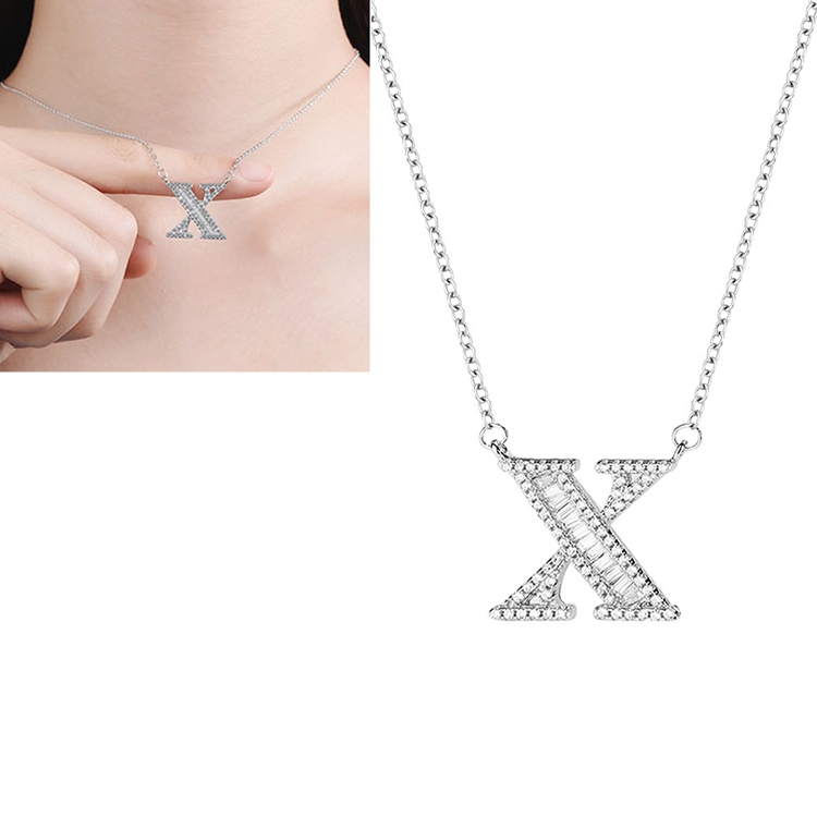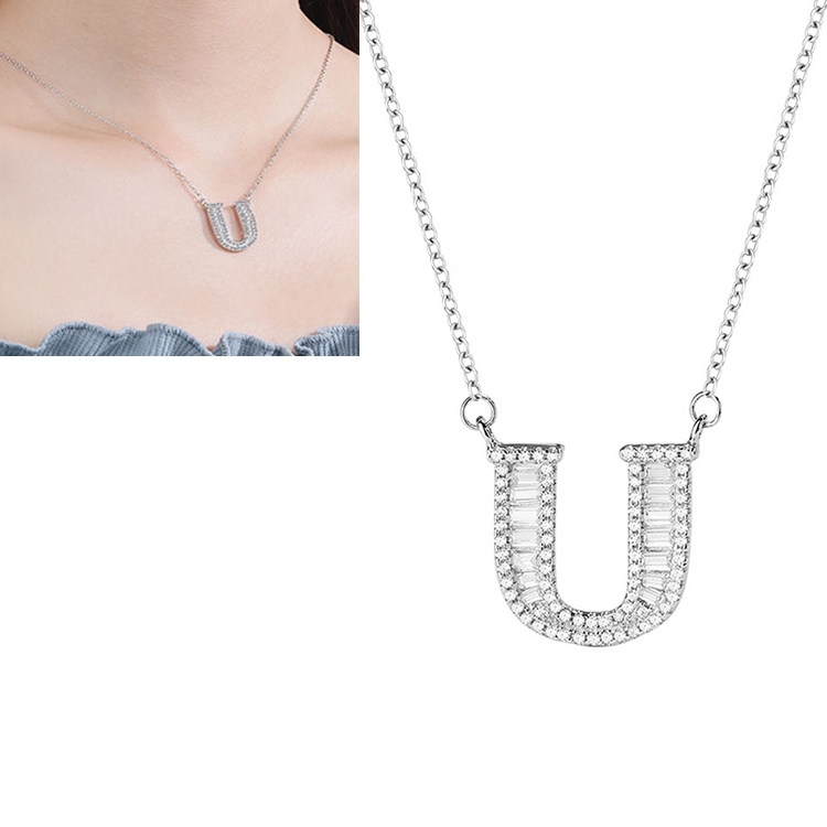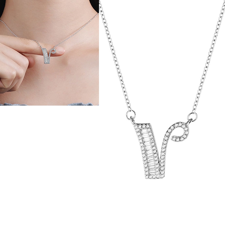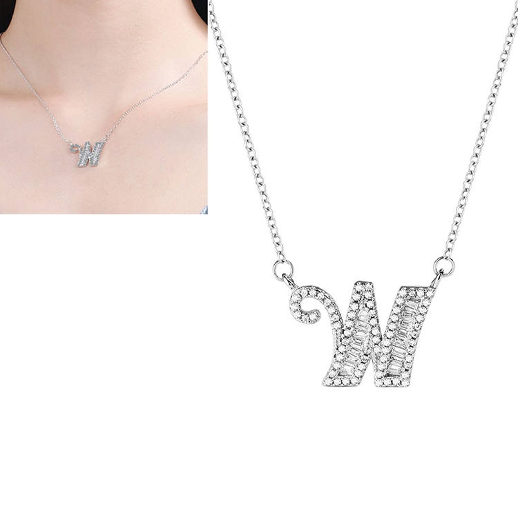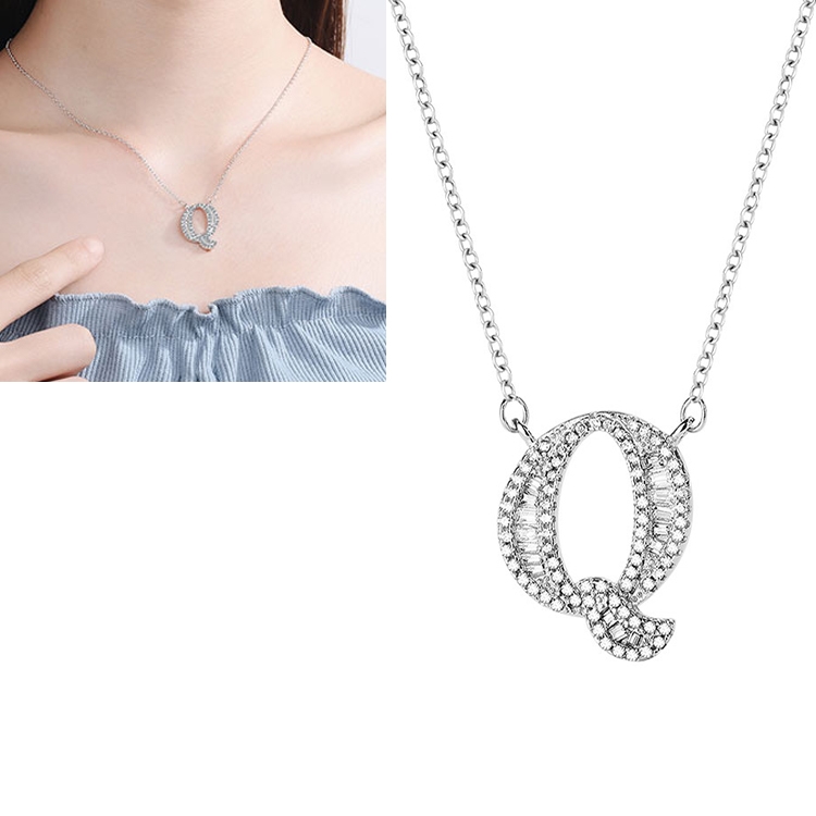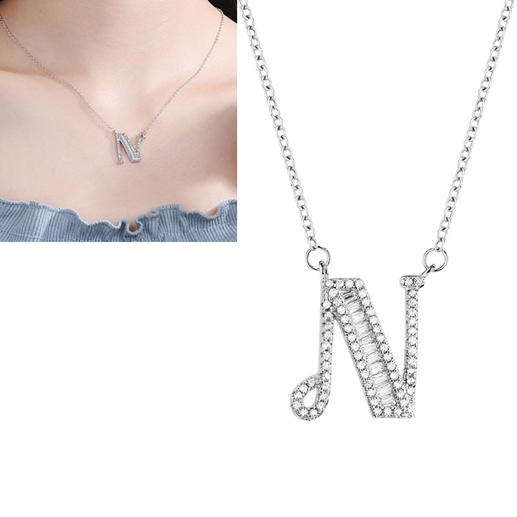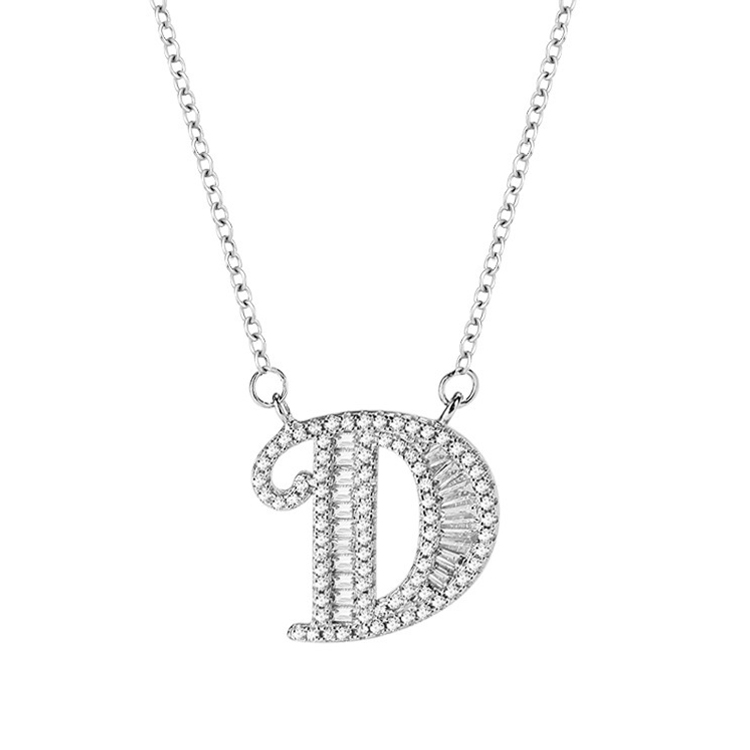 Women Fashion S925 Sterling Silver English Alphabet Pendant Necklace