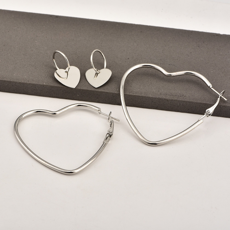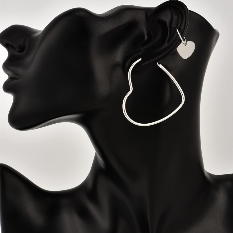 Women Fashion Simple Metal Love Heart Hoop Earrings Set