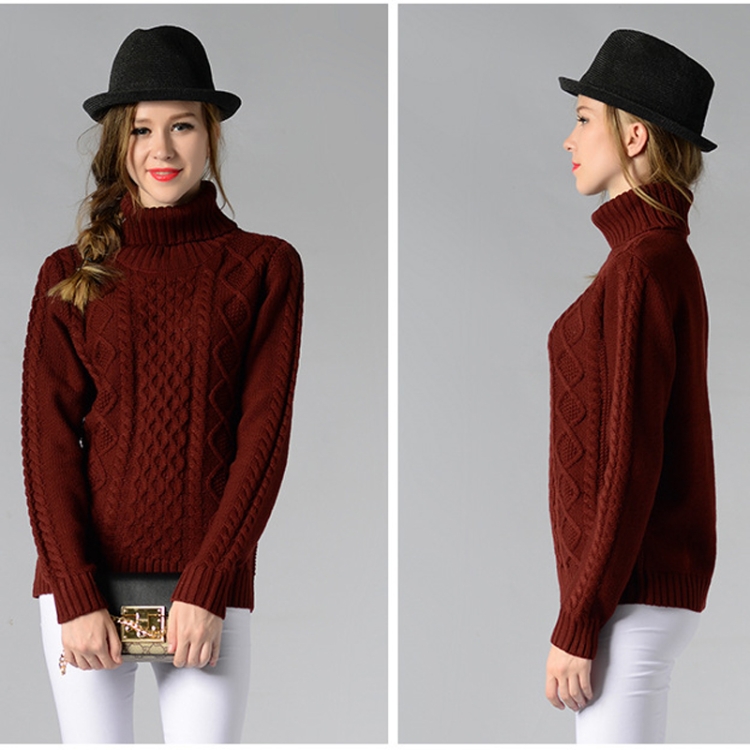 Women High Neck Knitted Sweater Long Sleeve Stranded Flower Bottoming Sweater