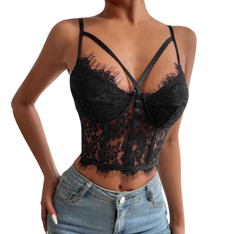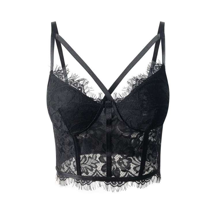 Women Lace Bra Slim Fit See-through Eyelash Bralet Crop Top
