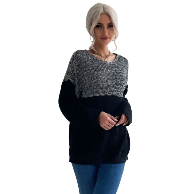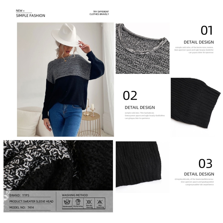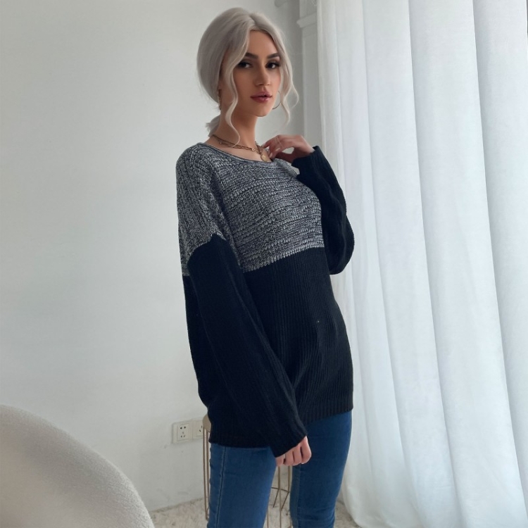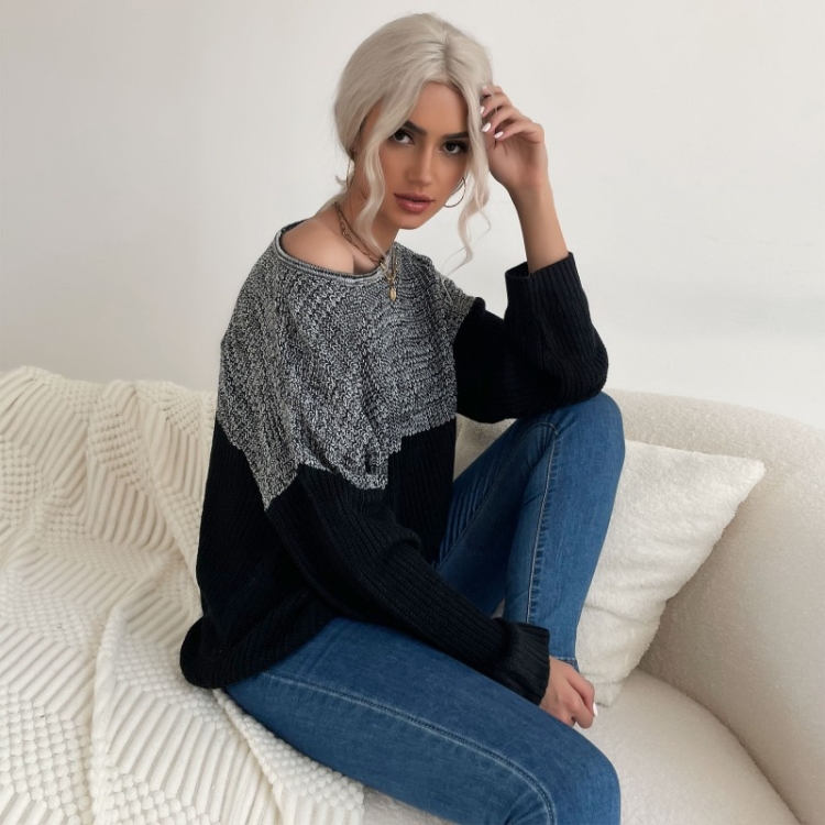 Women Long Sleeve Contrast Color Crew Neck Bottoming Sweater