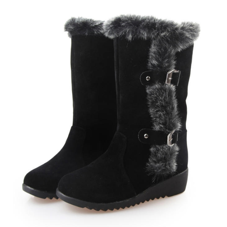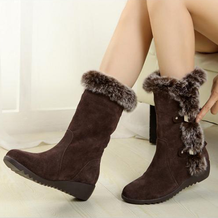 Women Mid-calf Snow Boots Thick-soled Faux Rabbit Fur Cotton Boots