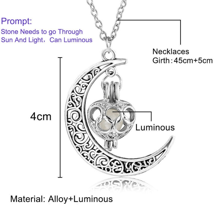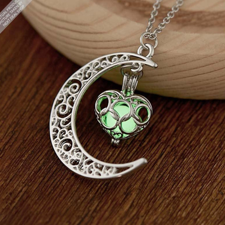 Women Moon Glowing Luminous Gem Charm Necklace Jewelry