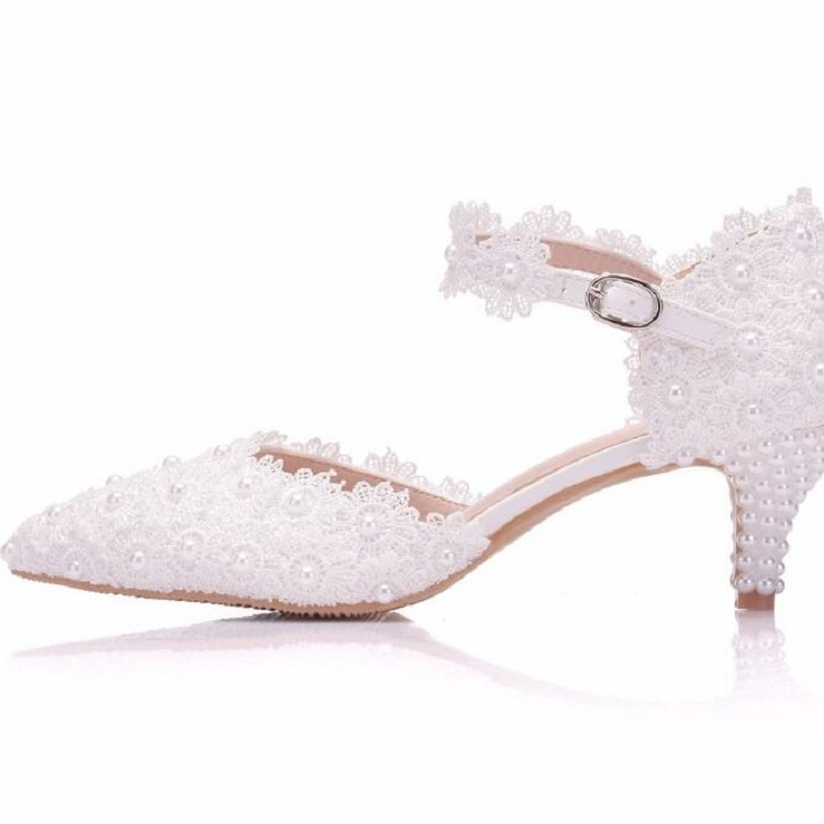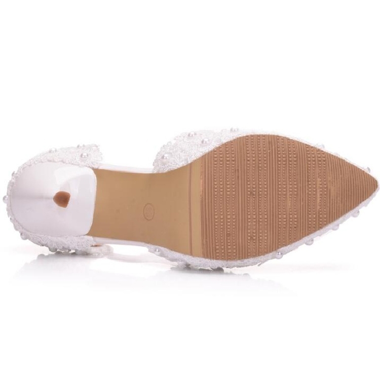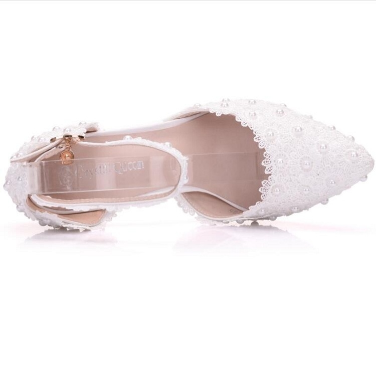 Women Shoes Lace Pearl Princess Pointed Shoes