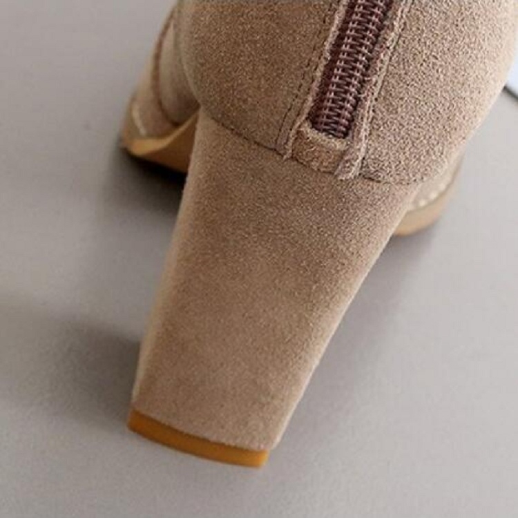 5. Design: round head, thick heel, belt buckle, middle tube, side zipper