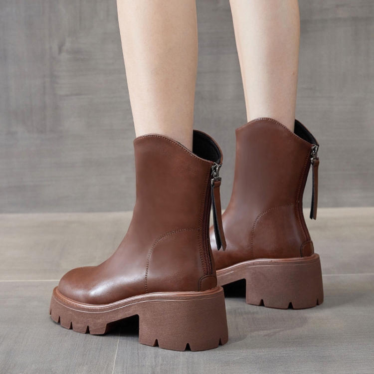 Women Short Boots Mid-calf Leather Thick Bottom Martin Boots