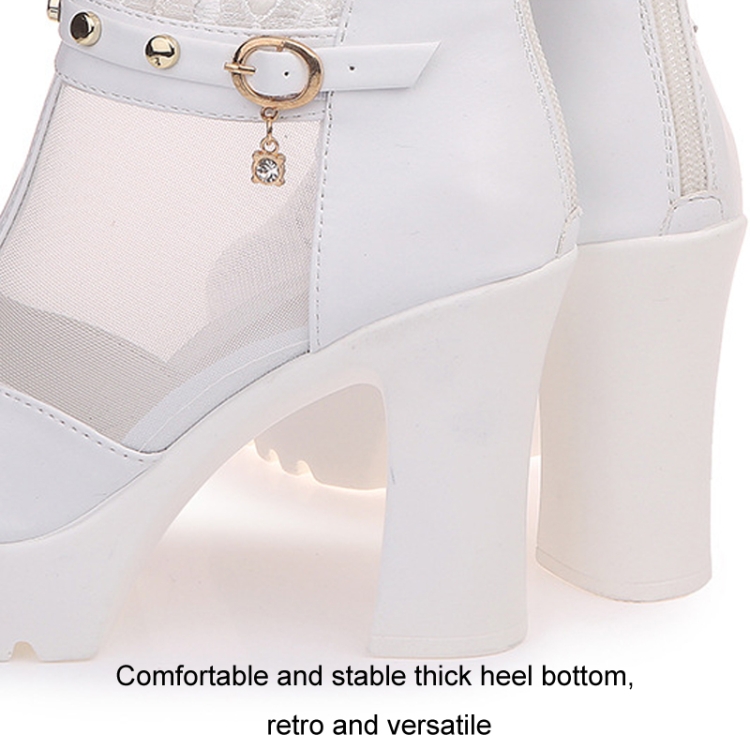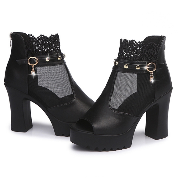 Women Summer Chunky Heel Peep Toe Mesh Sandal Boots Lightweight High Heeled Sandals