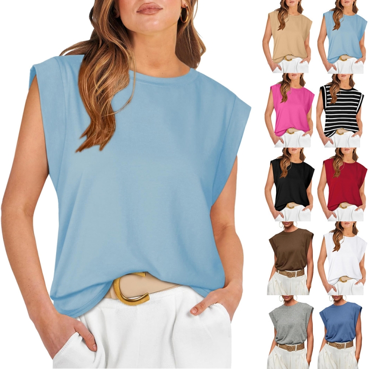 Women Summer Loose Top Basic T-Shirt Round Neck Casual Tank