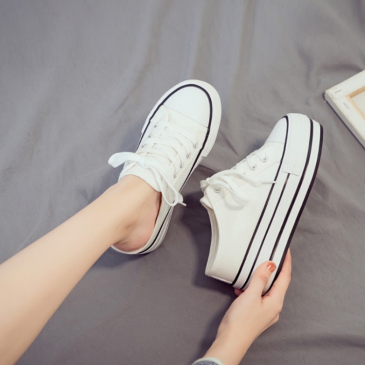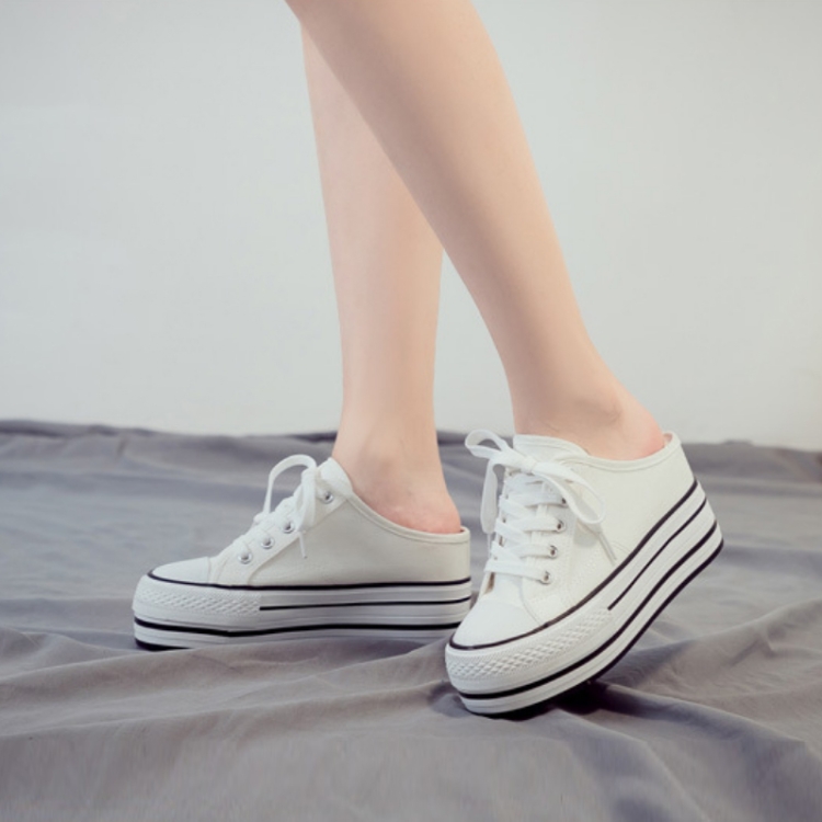 Women Thick-Soled Inner Heightened Semi-Slipper Canvas Shoes Lazy One-Legged Platform Shoes