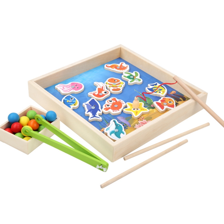 Wooden Children Early Education Toys Baby Clip Beads Magnetic Fishing Games Toy