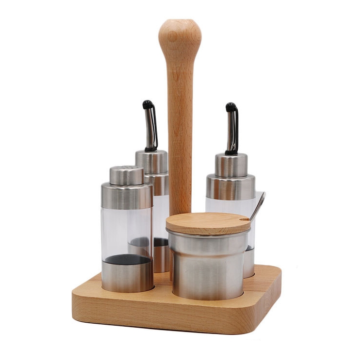 Wooden Creative Seasoning Jar Set Kitchen Rack