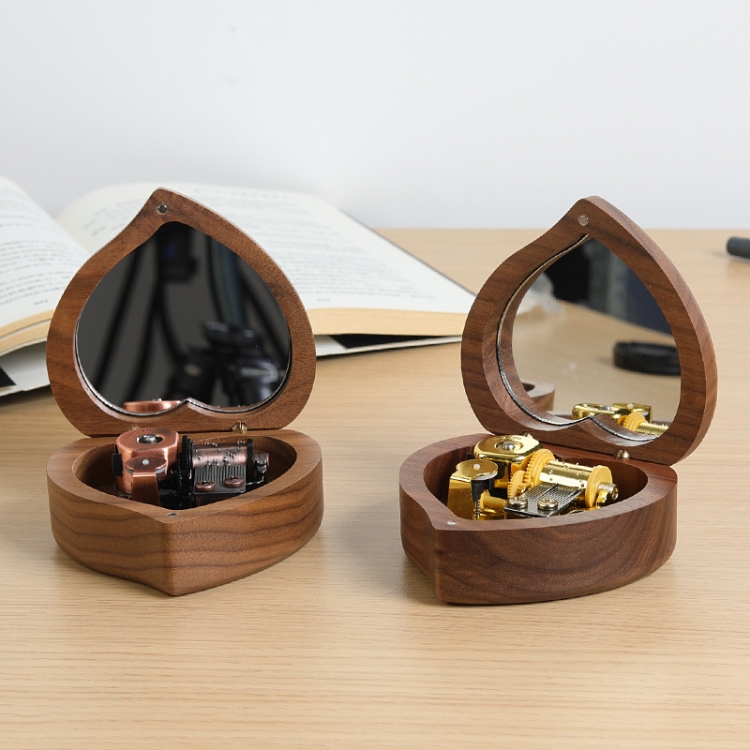 Wooden Heart Shape With Mirror Music Box Ornaments