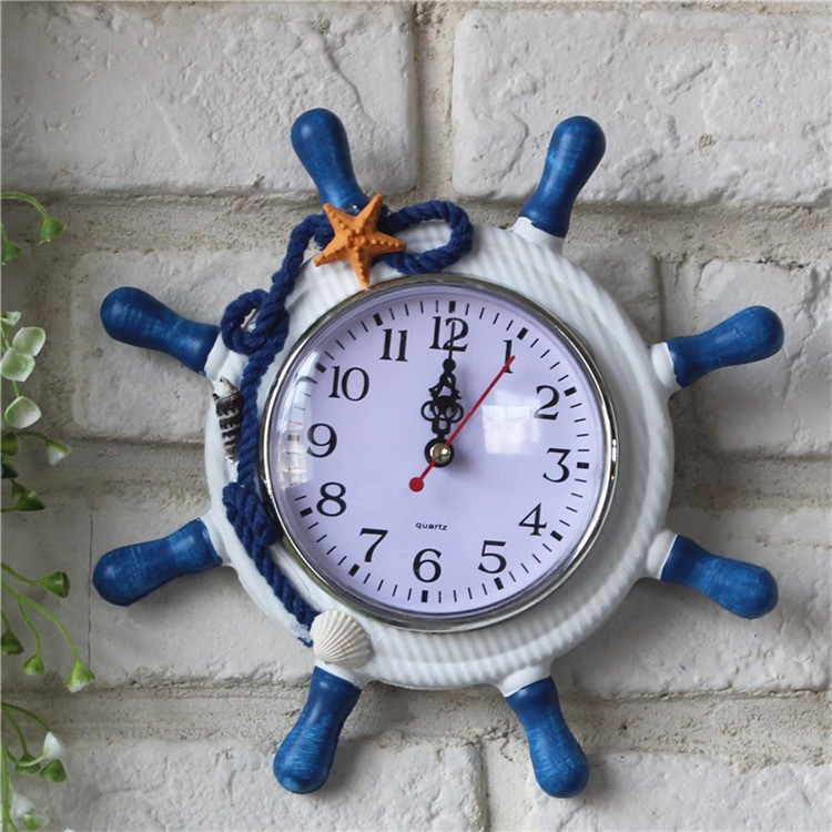 Wooden Helmsman Ship Wheel Shape Decorative Living Room Wall Clock, Size: 22*22*2.5cm