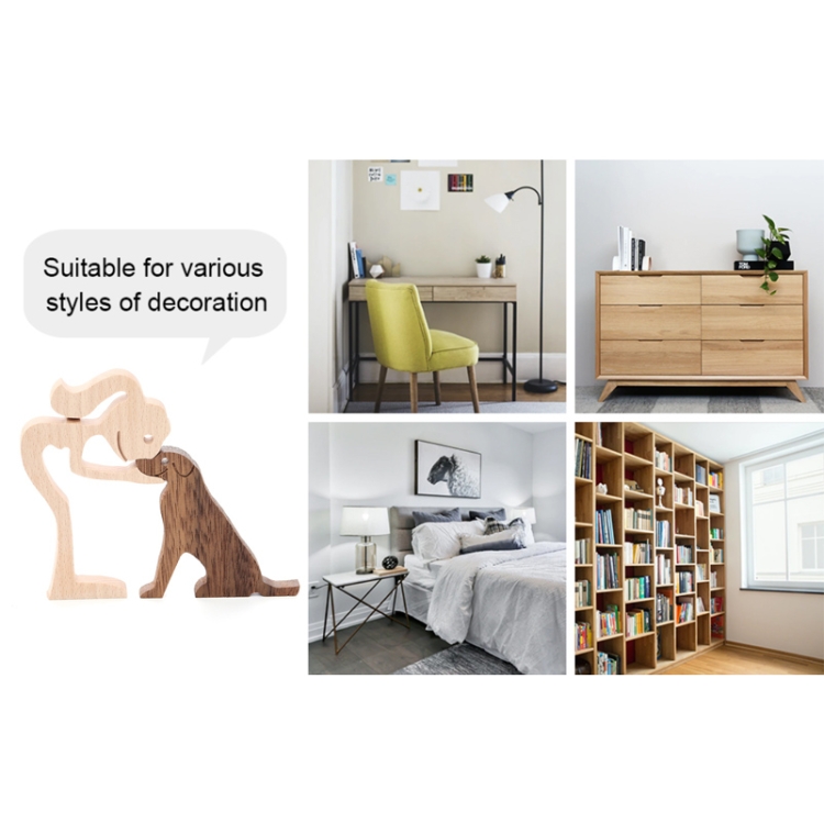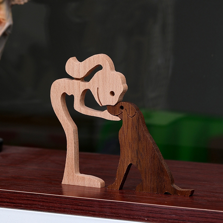 Wooden Human Dog Ornaments Office Home Wood Carving Decoration