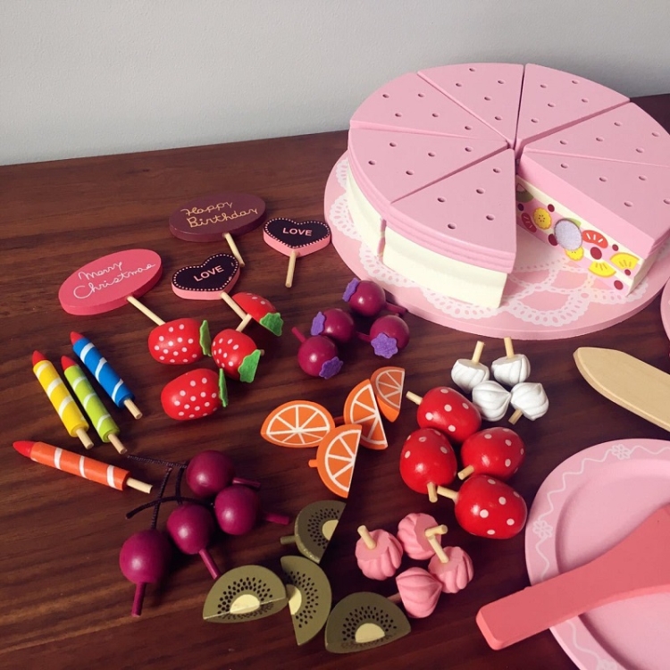 Wooden Strawberry Double-Layer Birthday Cake Children Educational Role-Playing Toy