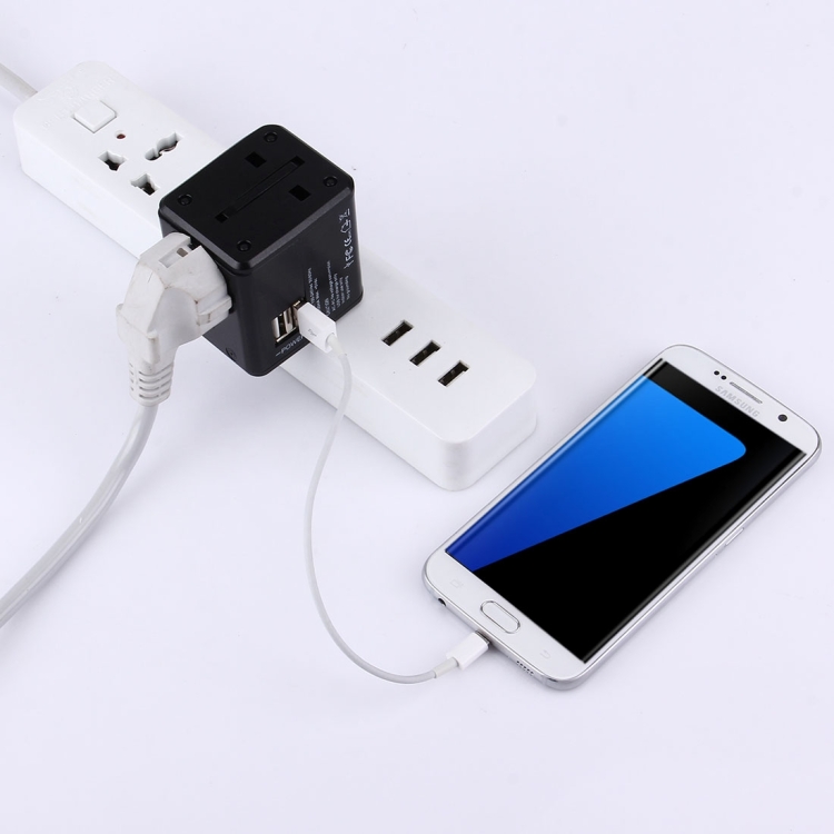 World-Wide Universal Travel Concealable Plugs Adapter with & Built-in Dual USB Ports Charger for US, UK, AU, EU