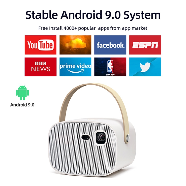 1. It applies a portable size and LED lamp, with Android 9.0 OS, BT4.2 and Wi-Fi dual bands capability, that can transform any surface into a 100-inch screen with unparalleled brightness and clarity. The superior dimension converter brings all 4K videos to life in brilliant 3D.