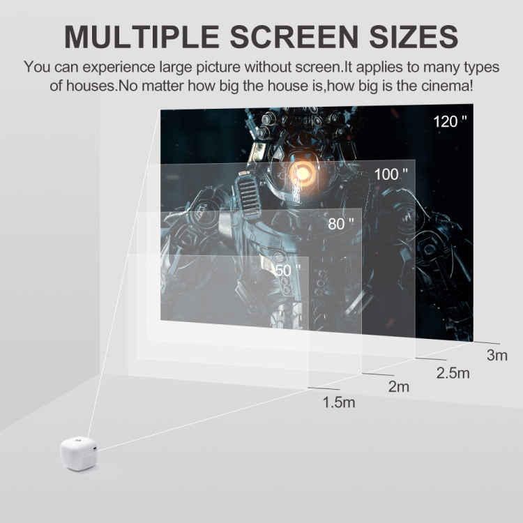 1. It applies a quite mini size and LED lamp, with Android 9.0 OS, Bluetooth and Wi-Fi wireless capability, who can transform any surface into a 60-80 inch screen.
