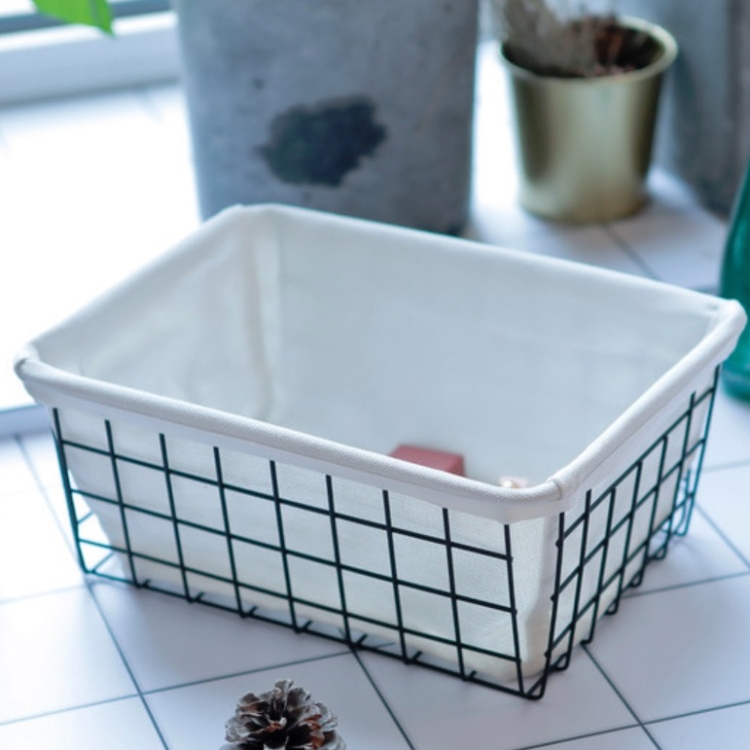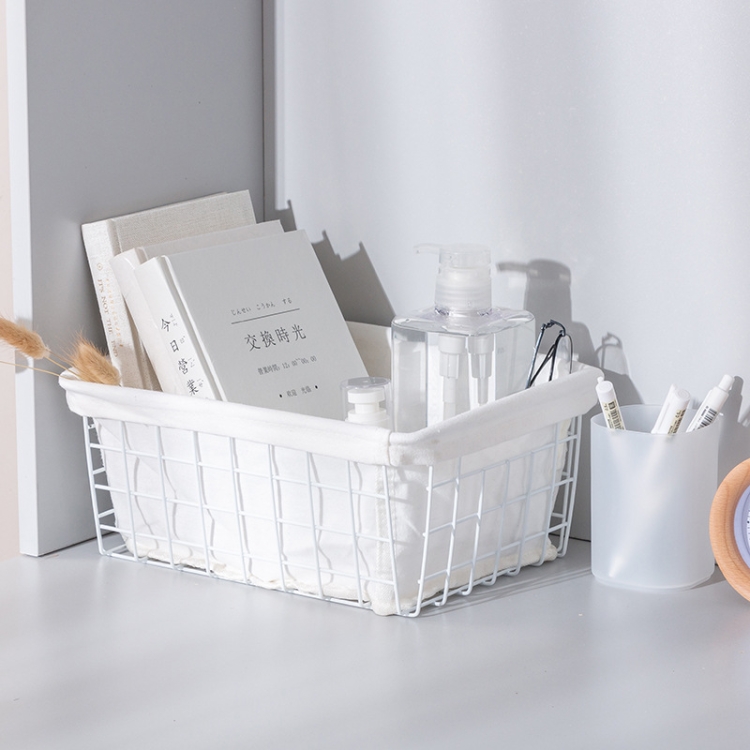 Wrought Iron Tabletop Snack Storage Box Sundries With Cloth Storage Basket