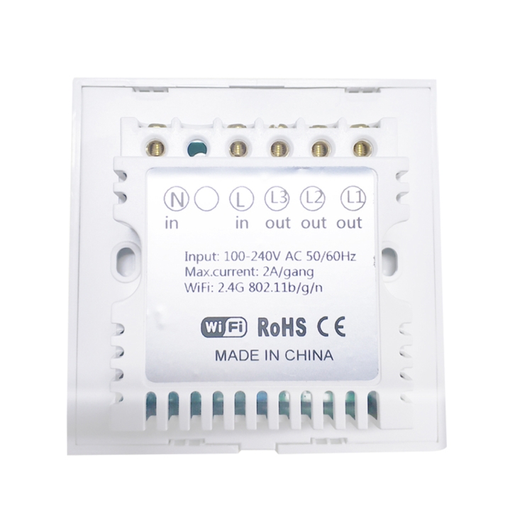 WS-UK-03 EWeLink APP & Touch Control 2A 3 Gangs Tempered Glass Panel Smart Wall Switch, AC 90V-250V, UK Plug