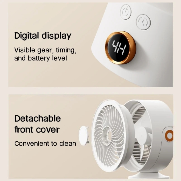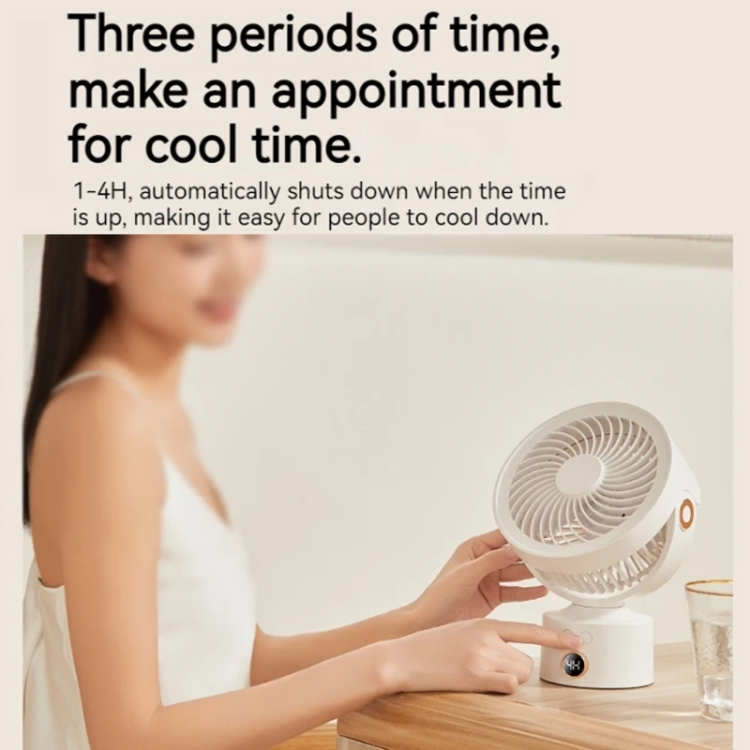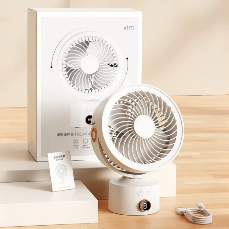 WT-F70 Oscillating Desk Fan 3-Speed Digital Display, 4-Hour Timer, Adjustable Tilt Angle, Built-In 4000 MAh Battery
