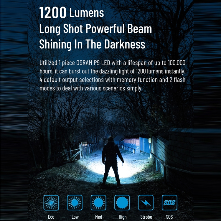 1. Using OSRAM P9 LED, it can emit up to 1200 lumens, nearly 588 feet of strong light.