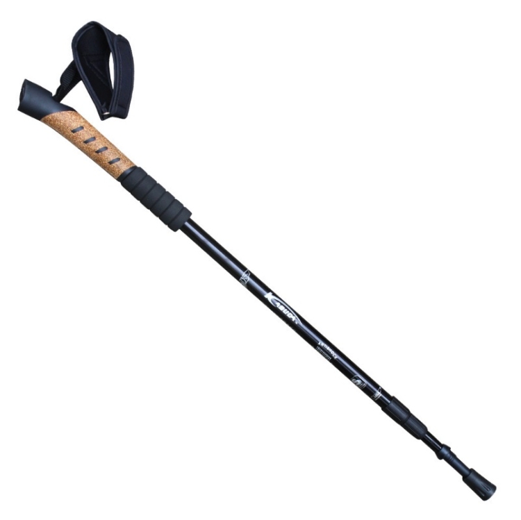 WUXIAN Outdoor Aluminum Alloy Multi-Function Knife Type Cork Straight Handle Three-Section Telescopic Trekking Pole Random Colour Delivery