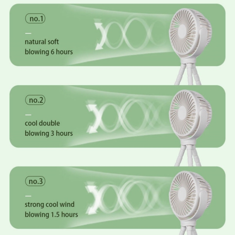 2. Flexible octopus tripod design, the fan can be used as a handheld fan, hanging fan, desktop fan, baby stroller fan, etc.