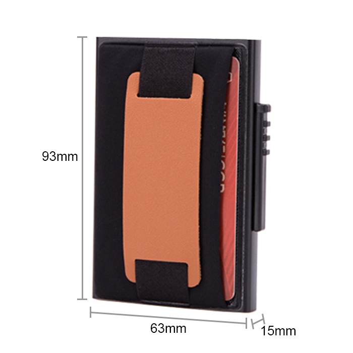 X-32C Automatically Pop-up Card Type Anti-magnetic RFID Anti-theft Men Aluminum Alloy A Dial Button Elastic Bag Wallet with PU Leather Strap