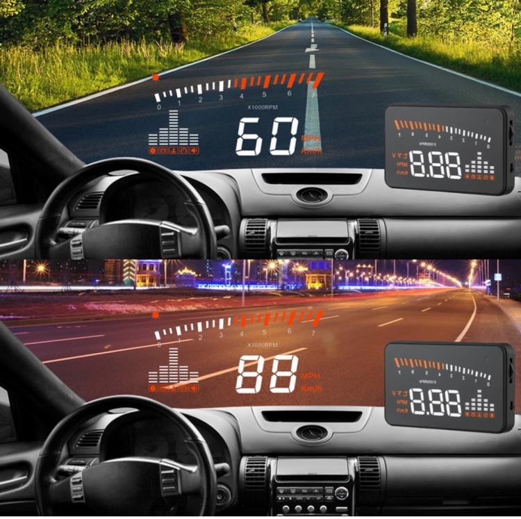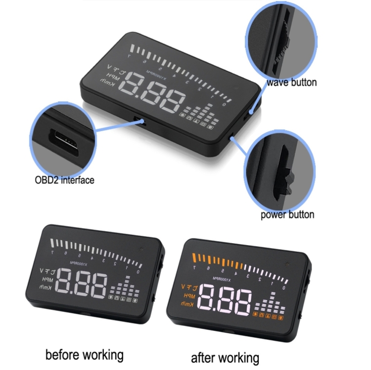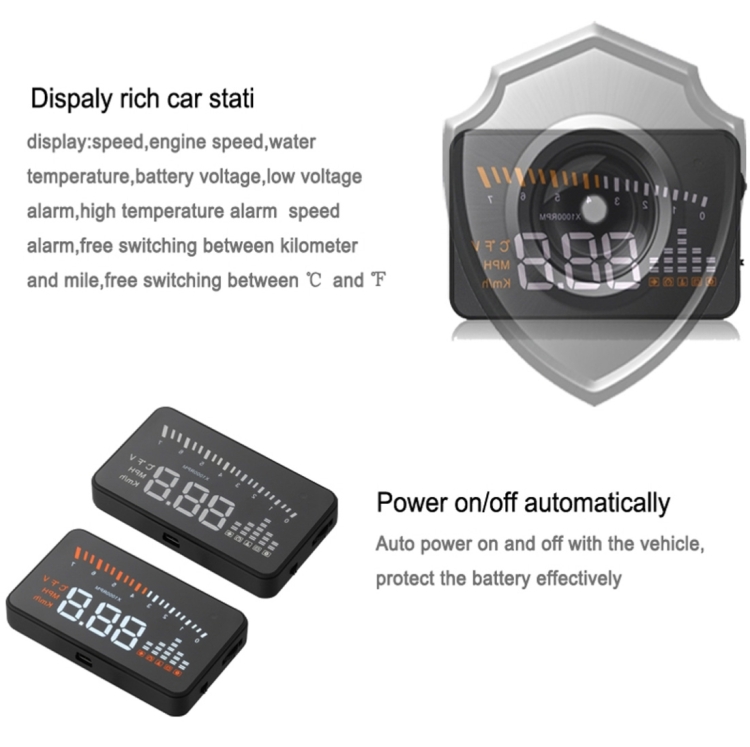 X5 HUD 3 inch Universal Multi Car Head Up Display with OBDII EOBD System, Light Sensors, Rotation Speed, Rotation Speed Unit, Unit Mark, Voltage, Water Temperature, Alarm mark(Black)