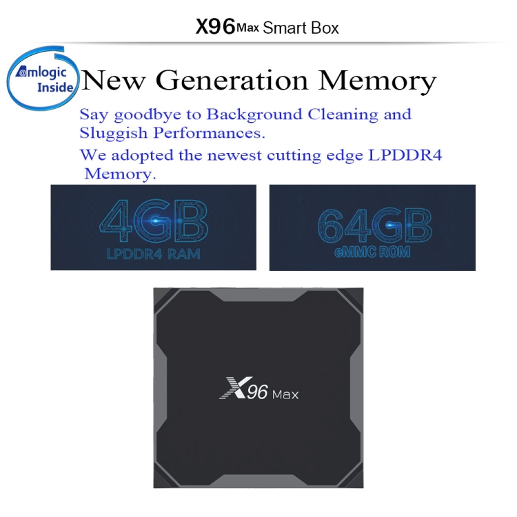 X96 Max 4K Ultra HD Media Player Smart TV Box with Remote Controller, Android 8.1, Amlogic S905X2 Quad Core ARM Cortex-A53 up to 2GHz, 4GB+64GB, Support TF Card, RJ45, Dual Band WiFi, Bluetooth