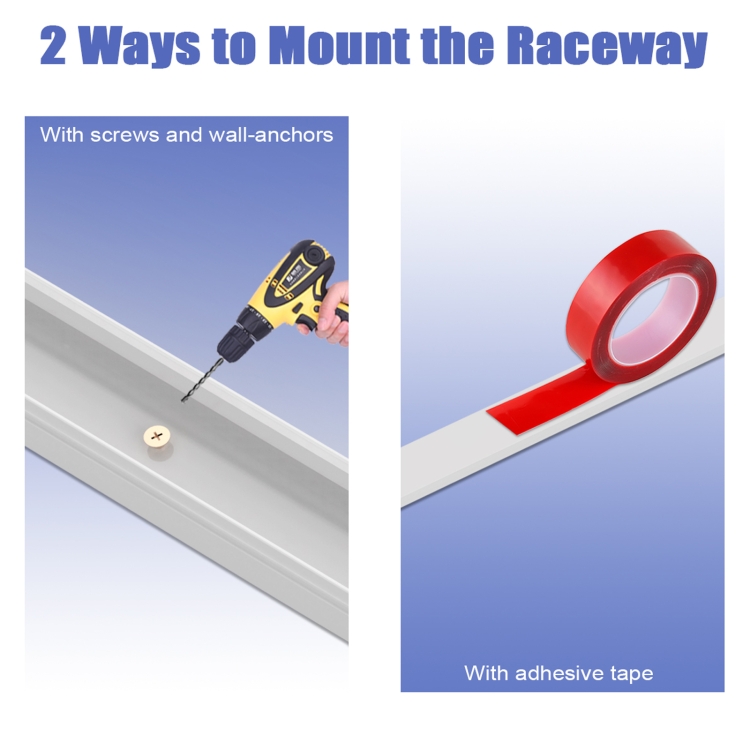 7. Simple installation: The power cord management kit comes with screws and fixers (30 pieces each), which can be permanently installed on the wall; you can also use the included 19.6-foot peelable and sticky tape to avoid drilling and protect the wall surface