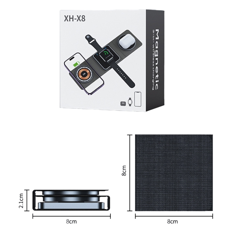 XH-X8 15W 3-in-1 MagSafe Foldable Mini Magnetic Mobile Phone Earphone Watch Wireless Charger