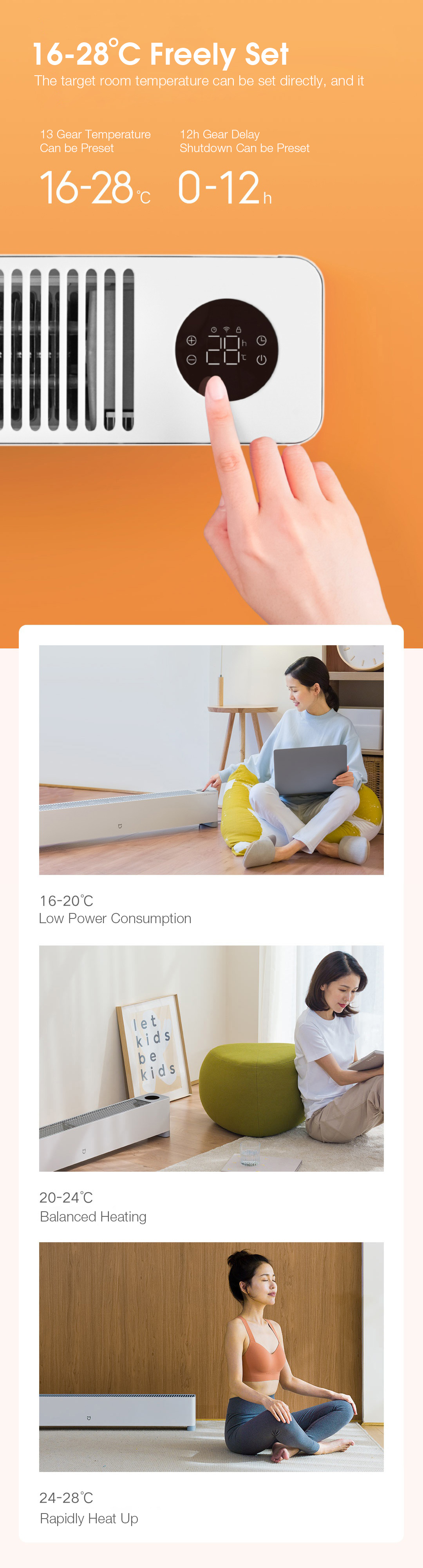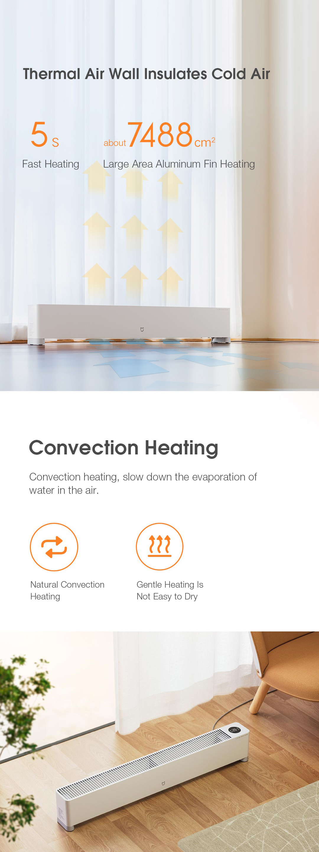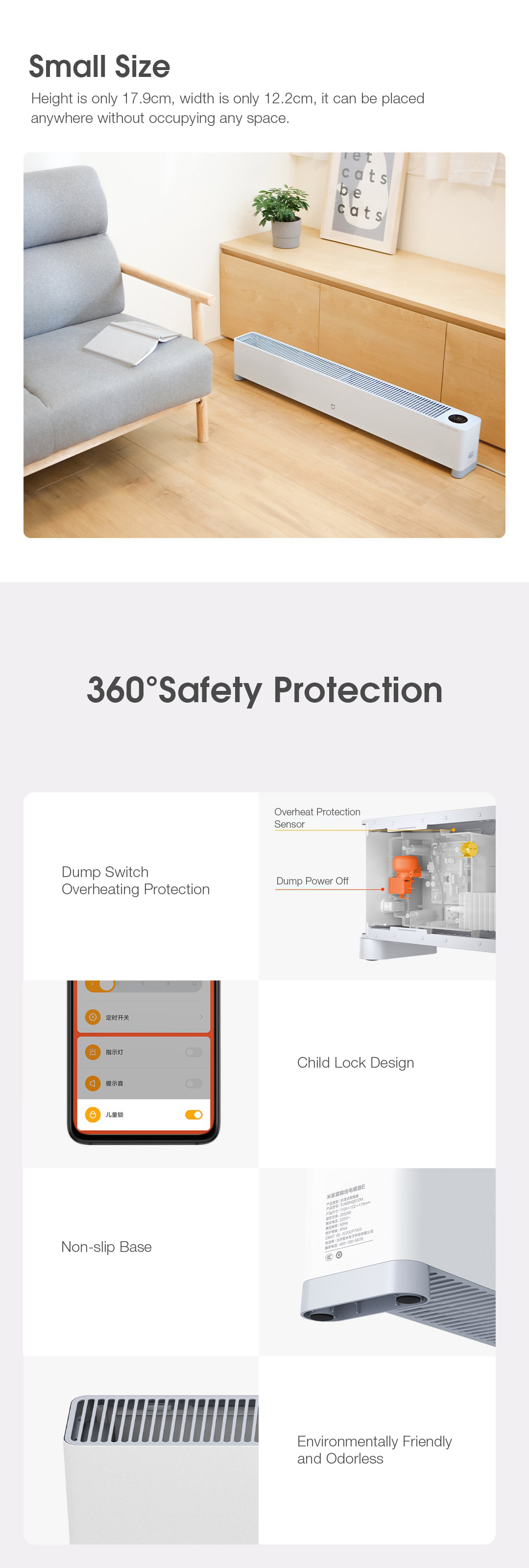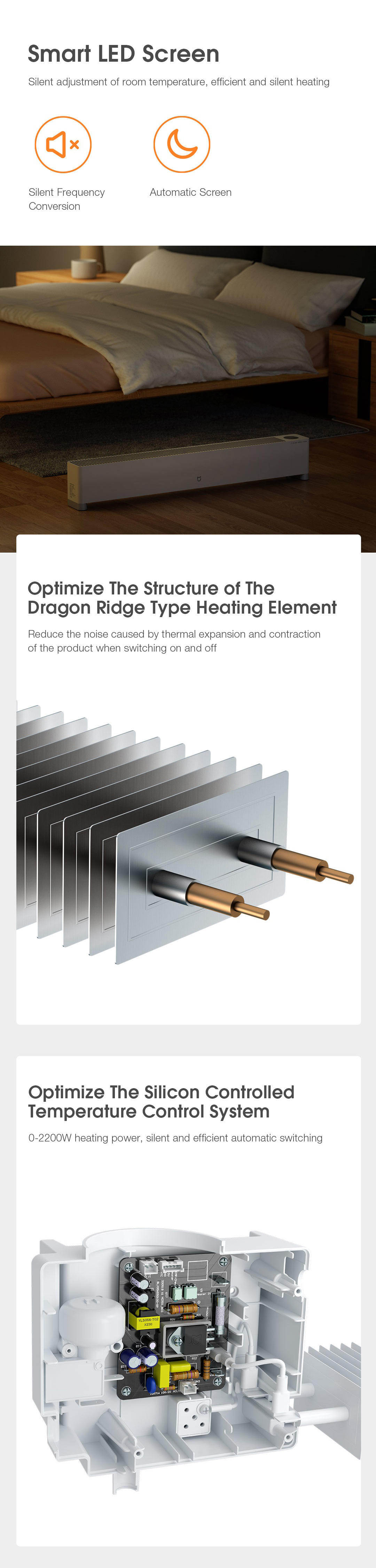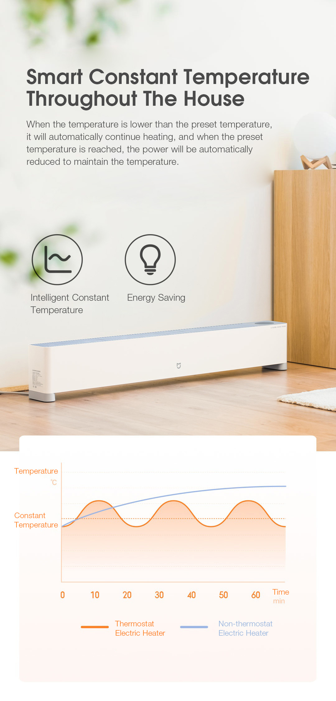 Xiaomi Baseboard Electric Heater E TJXDNQ01ZM 2200w Convection Space Heater with Thermostat and Mobile Phone Operation For Home