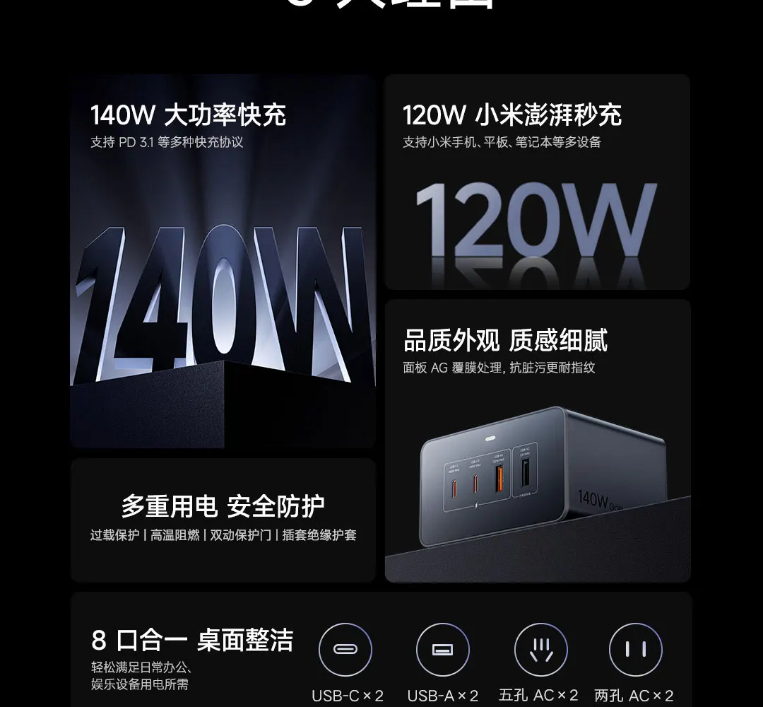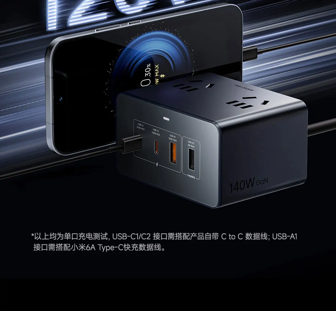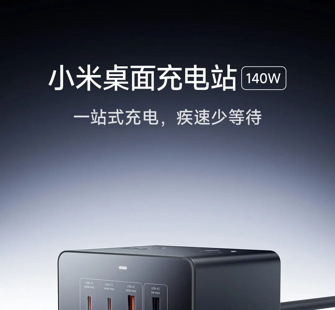 Xiaomi Desktop Charging Station 140W GaN Charger USB Type C 6 Ports Fast Charging Station For iPhone Samsung Xiaomi MacBook New, US Plug