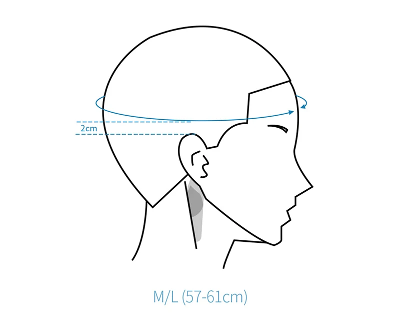 Use a measuring tape to start from the root of the front forehead, pass 2cm below the starting point of the back of the head, make a circle around the head, add 1-2cm to measure the horizontal dimension above the two ears, including the hair *Tighten the measuring tape when measuring, but don’t feel pressure