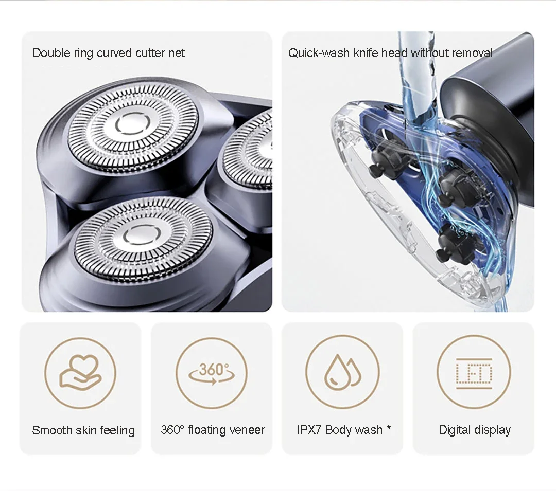 Xiaomi Mijia Electric Shaver S302 LED Digital Display IPX7 Waterproof 800mAh Type-C Rechargeable Razor Shaver For Men
