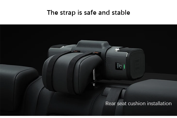 ROIDMI Car Air Purifier uses innovative bandage installation, more stable and safe. Car seat belt level safe standard makes car air purifier stably installed on the rear seat headrests ensuring stable and safe even on occasional bumpy road.