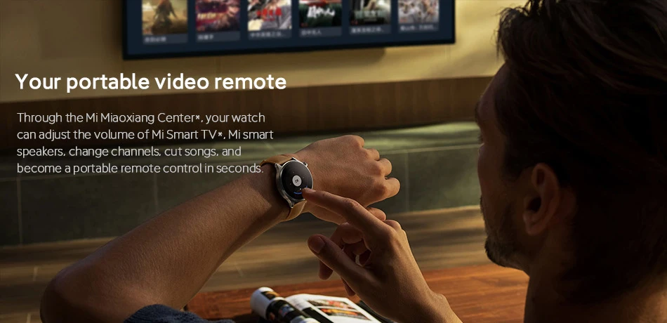 Through the Mi Miaoxiang Center*, your watch can adjust the volume of Xiaomi smart TV*, Xiaomi smart speakers.