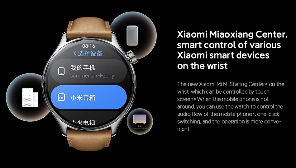 Through the Mi Miaoxiang Center*, your watch can adjust the volume of Xiaomi smart TV*, Xiaomi smart speakers.