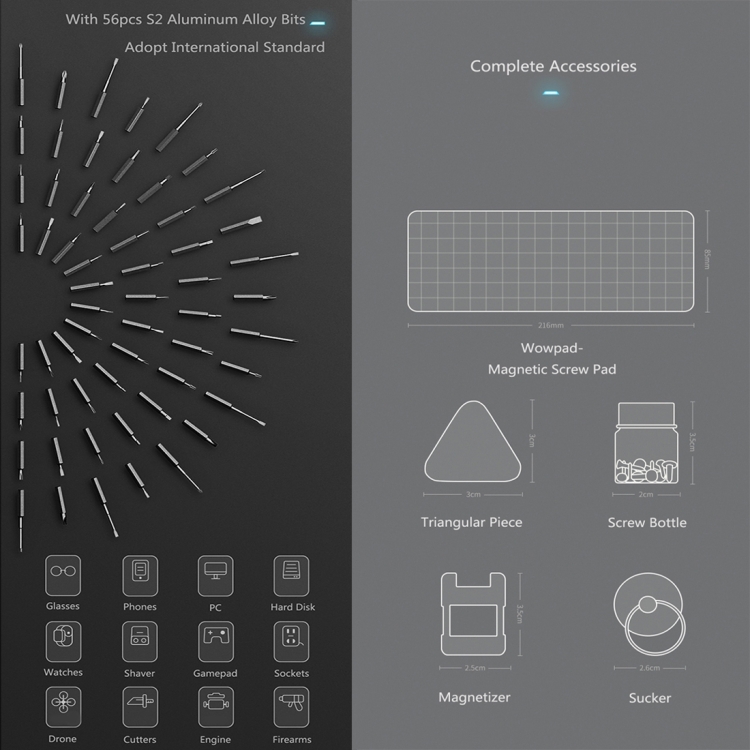 1. Xiaomi Mini Wowstick 1F+ Electric Screwdriver, with 56pcs screw bits.