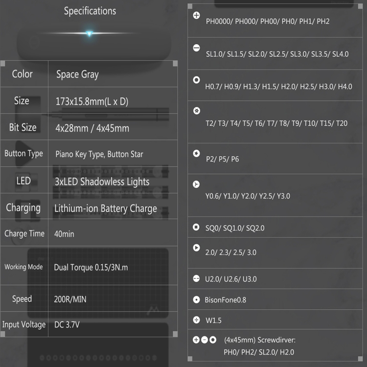 | Option | Wowstick 1F+, WOWSTICK 1fs, SD-18E, Screwdriver Tool Set, Electric Screwdriver, ZPJ1802A, 22 in 1, Mijia 25 in 1, Torsion bar connection rod, 12pcs /Set, 88pcs /Set, BJ-1003 |