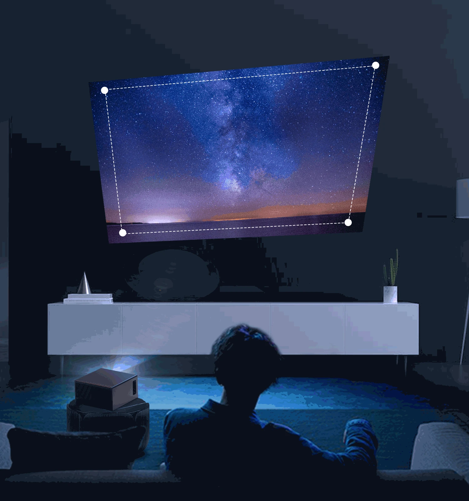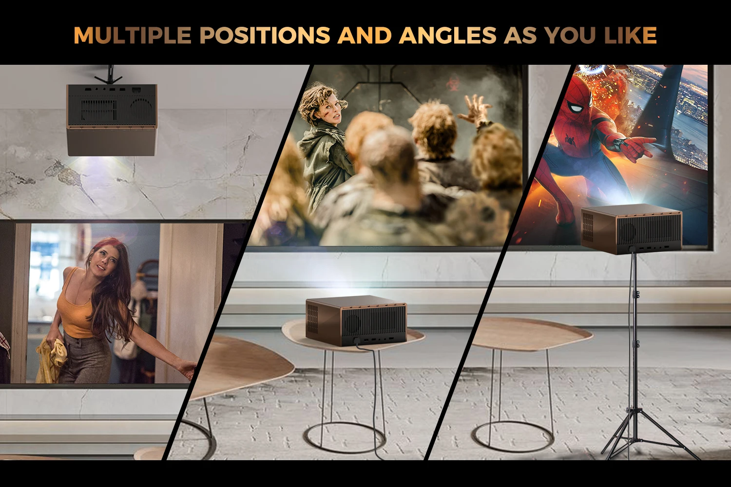 You can hang it on celling, or put it side projection or back projection, any place and angle as you like, because it has ±50°4D/4P Keystone Correction, you can adjust the image easily in every time.