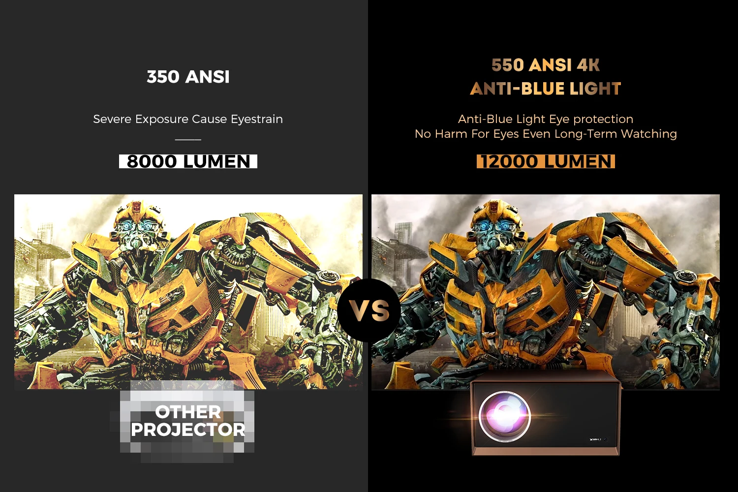Anti blue light, full True Color (1.67 million) ,100% appear the original color of the video/image/file . No overexposure and Distortion. (Many other projector seller increase exposure for the lumens number , we won’t do that )